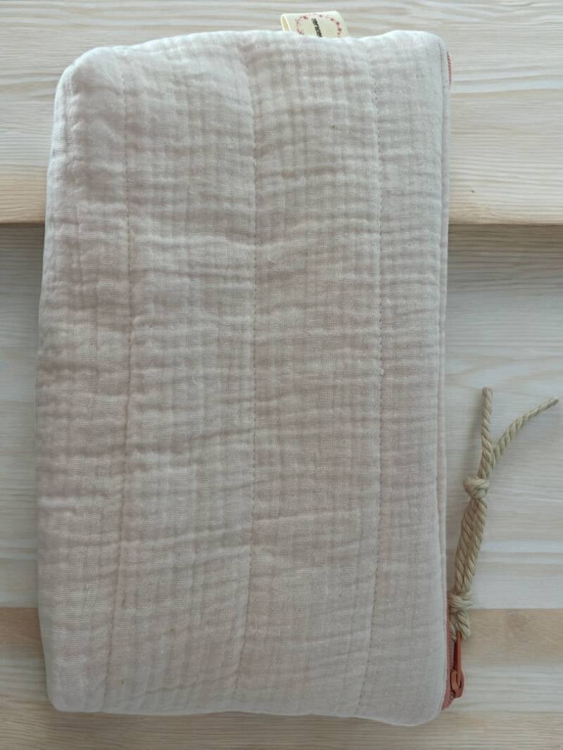 Descubre la versatilidad y elegancia de la bolsita neceser hecha a mano. Confeccionada con exterior de bambula de algodón acolchada y un interior liso de 100% algodón, esta pieza es perfecta para llevar a la playa, en tu bolso, durante tus viajes o para organizar tus cosméticos. Mantén tus pertenencias ordenadas y seguras con este fantástico accesorio. Tamaño: 18cm de alto x 28cm de ancho. ¡Hazte con la tuya y añade un toque de estilo a tu día a día!